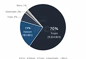 5월 한달 간 탐지된 악성코드를 유형별로 비교하였을 때 Adware(애드웨어)와 Virus(바이러스)가 각각 47%, 20%로 가장 높은 비중을 차지하였고, Trojan(트로이목마)이 15%, Downloader(다운로더)과 Ransom(랜섬웨어)이 각각 4%씩으로 그 뒤를 따랐다.