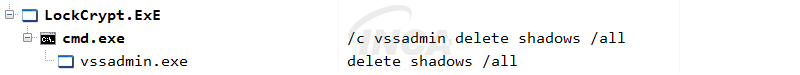‘LockCrypt’ 랜섬웨어 실행 시, 가장 먼저 자가 복제를 진행하고 재부팅 이후에도 랜섬웨어 실행 파일이 자동으로 실행되도록 등록한다. 또한 화이트 리스트 프로세스 이외의 프로세스는 지속해서 강제 종료시키며 C 드라이브의 “Windows” 폴더를 제외한 모든 경로의 전체 파일을 대상으로 암호화를 진행한다. 암호화 작업이 완료된 이후에는 사용자가 시스템 복구 기능을 이용하지 못하도록 볼륨 섀도우를 삭제하고, 이벤트 로그를 삭제해 흔적을 지운다.