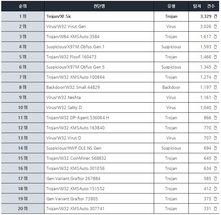악성코드 Top20