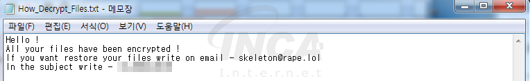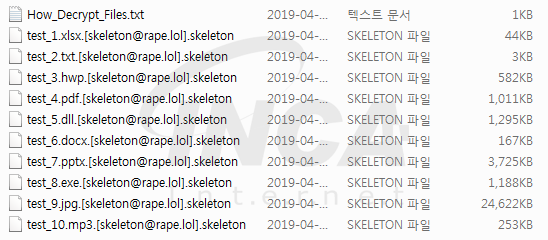 이번 보고서에서는 .skeleton감염 확장자를 사용하는 Blind 랜섬웨어에 대해 간략하게 알아보고자 한다.