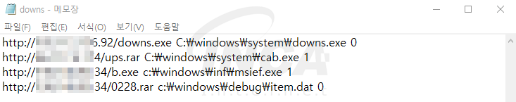 그리고 C&C 서버와 연결되어 추가적으로 다운로더 실행파일을 다운받는다. 해당 다운로더는 ‘upsupx.exe’ 파일명에서 “C:\Windows\Temp” 경로에 ‘conhost.exe’ 파일명으로 바뀌어 실행되고 원격 제어 프로그램과 txt, html 확장자를 가진 추가 파일들을 함께 다운받는다.
