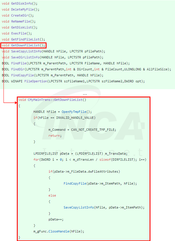 원격 제어 프로그램(‘item.dat’)은 오픈소스로 제작되었으며 파일 다운로드 및 업로드 할 수 있고 사용자 PC의 서비스, 레지스트리, 프로세스를 수정 및 모니터링 할 수 있는 기능을 갖고있으며 원격 제어 프로그램과 함께 다운로드 된 실행 파일은 아래 [그림 6]에 적혀있는 경로에 저장된다.