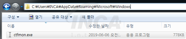 파일 암호화를 시작하기 전, 먼저 자기 자신을 “%APPDATA%\microsoft\windows” 경로에 ‘ctfmon.exe’ 파일명으로 복제하고 시스템 재부팅 시에도 자동으로 실행 될 수 있도록 Run 레지스트리에 자기 자신을 등록한다.