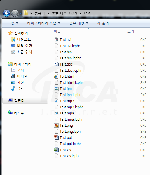 해당 랜섬웨어는 일반적인 랜섬웨어 와는 다르게 암호화 대상이 되는 파일의 원본은 크기를 0KB로 바꾸고, 암호화 시킨 파일 뒤에 .lcphr 의 확장자를 추가한다.