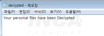 랜섬웨어가 실행되면 아래와 같은 화면을 통해 피해자에게 감염 사실을 알린다.