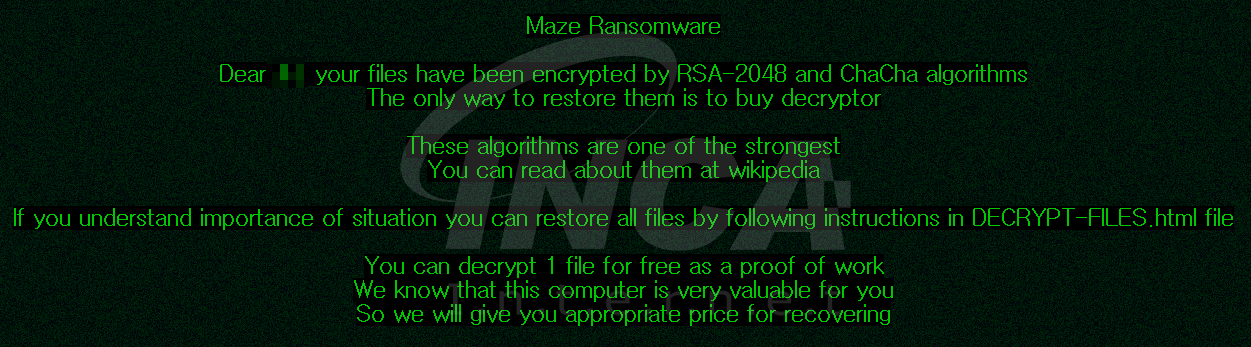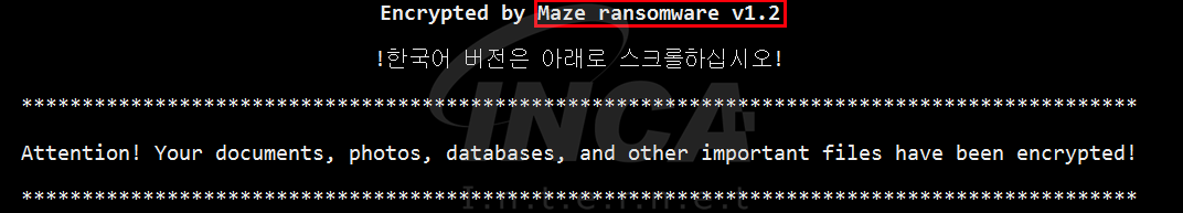 한국어를 사용하는 Maze Ransomware 감염 주의