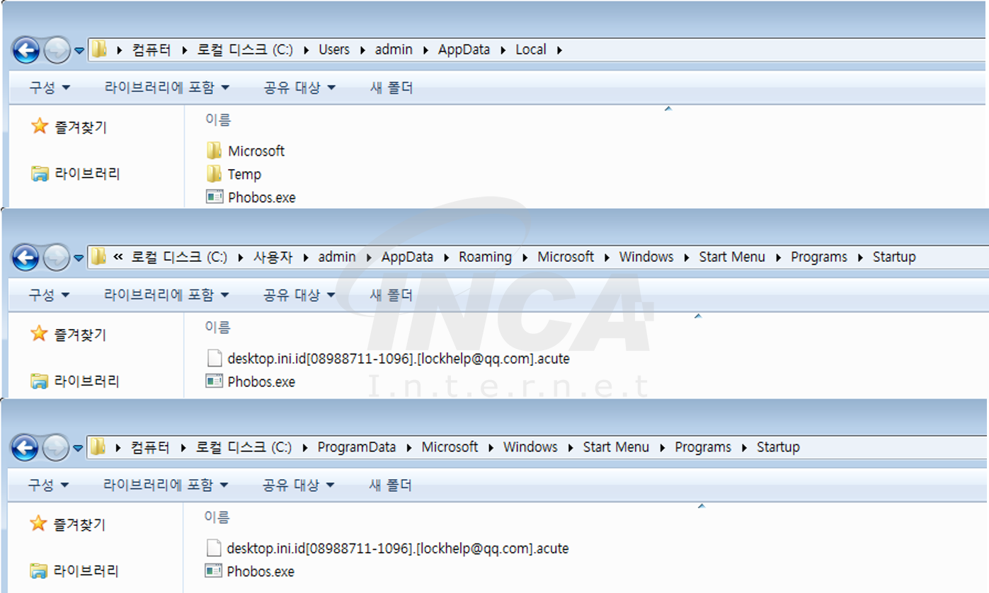 해당 랜섬웨어가 실행되면 특정 경로 3곳에 자기 자신을 복제한다. 해당 경로는 아래와 같다.