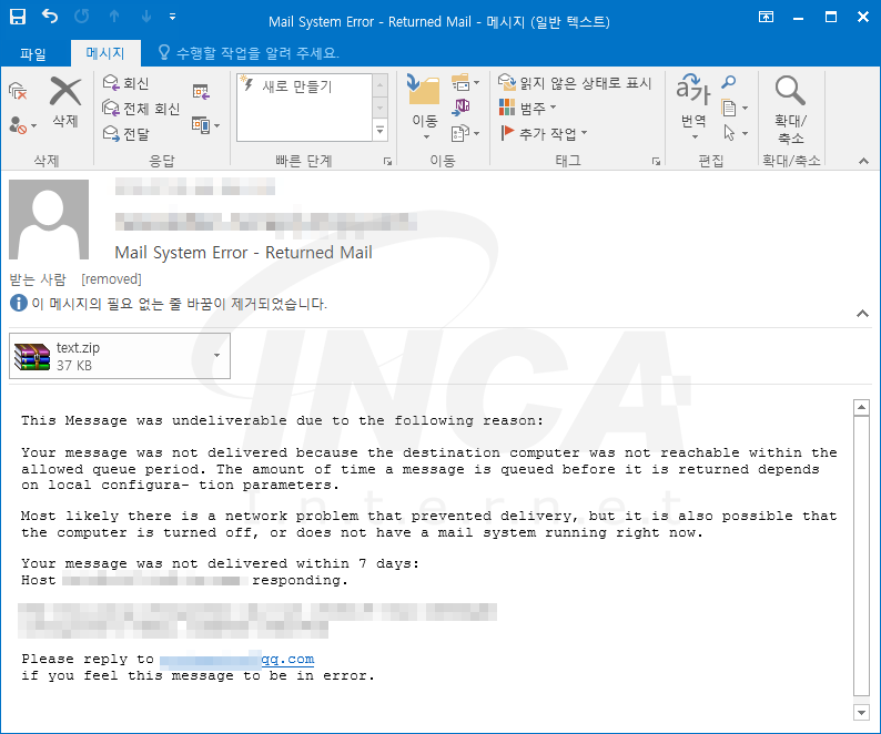 malware-traffic-Analysis에 따르면 해당 악성코드는 메일 시스템 오류로 인해 이메일이 반송되었다는 내용으로 위장해 이메일의 첨부파일로 유포된다고 알려진다.