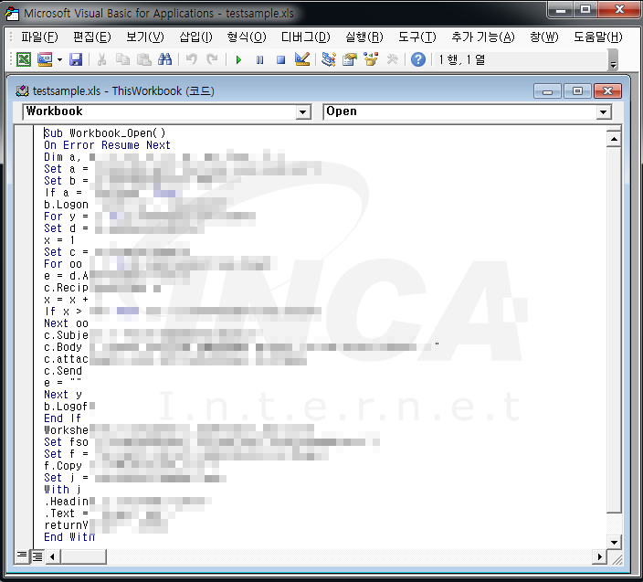 ‘Alcoul’ 이메일 웜은 문서 형태로 제작되어 문서 내부에 악성 매크로를 포함하고있다.