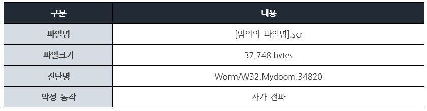 이메일 웜은 과거에 만우절이나 크리스마스와 같은 특정 기념일에 이메일을 통해 대량으로 전파되었다. 이메일 웜에 감염된 PC는 이메일 웜이 첨부된 메일을 이메일 주소록에 있는 사람들에게 자동으로 재전송 하도록 되어있어 단시간에 다량으로 확산 시켜 피해를 유발한다. 또한 ‘Mydoom’ 이메일 웜은 2004년경에 발견되어 현재까지 유포되고 있다고 알려진다. 이번 보고서에서는 문서형 ‘Alcoul’ 이메일 웜을 통해 이메일 웜의 동작 방식을 알아보고, 최근 유포 중인 ‘Mydoom’ 이메일 웜의 악성 동작에 대해 알아본다.