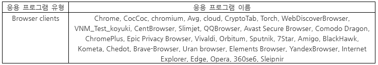 [표 1] 대상 브라우저 클라이언트 목록