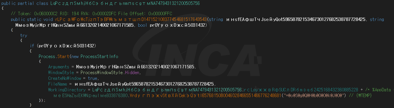 해당 악성코드를 실행하면 먼저 “%AppData%” 경로에 ‘NvidiaDriver.exe’ 파일명으로 자가 복제 및 실행한다. 실행된 ‘NvidiaDriver.exe’는 내부에 Base64로 인코딩된 PE 파일을 디코딩 후 메모리로 로드한다.