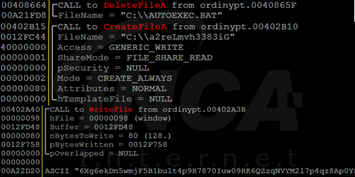 사용자의 PC에 접근하여 드라이브의 잔여 용량을 확인하여 사용중인 드라이브를 대상으로 공격을 한다. 그리고 존재하는 파일의 확장자가 훼손 대상인지 확인한 뒤 파일을 삭제하고, 삭제된 파일의 경로에 14자리의 랜덤한 값을 이름으로 임의의 파일을 생성하는 동작을 반복한다.