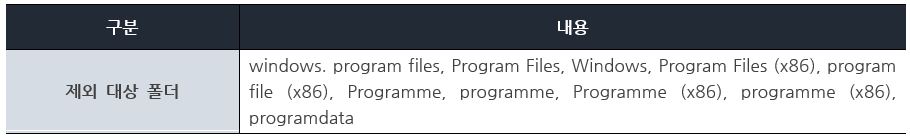 시스템에 문제가 되지 않도록 [표 2] 에 해당하는 시스템 폴더에는 접근하지 않는다.