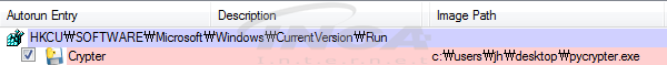 PyCrypter 랜섬웨어 실행 파일을 윈도우 부팅 시 마다 자동실행되도록 레지스트리에 등록한다.