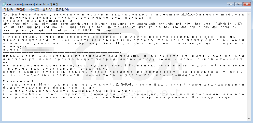 참고: 8월 랜섬웨어 동향 및 Nemty 랜섬웨어 분석보고서 : https://isarc.tachyonlab.com/2521
