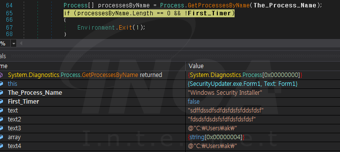“SecurityUpdater.exe.exe” 는 “Windows Security Installer.exe” 실행을 시도하나 해당 경로에 파일이 존재하지 않아 실패한다.