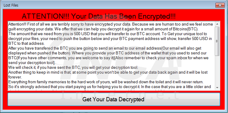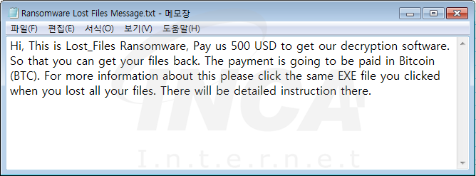파일이 감염되면 ‘파일명.Lost_Files_Encrypt’ 으로 파일명이 변경된다.