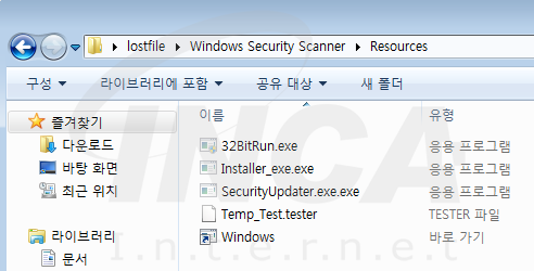 “Windows Security Scanner”로 가장한 해당 악성코드는 실행 시 같은 경로 내에 숨김 속성으로 되어 있는 ‘Resource’ 폴더 내 파일들을 사용한다.