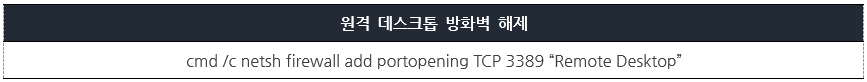 원격 데스크톱 프로토콜이 사용하는 3389/TCP 포트를 방화벽에서 열어둔다.