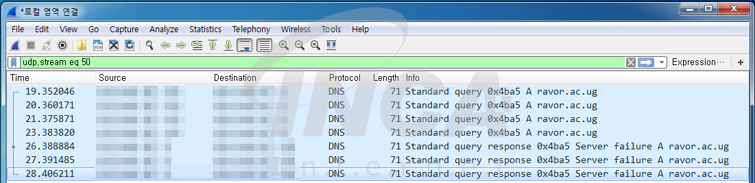 분석 당시에는 해당 도메인(ravor.ac.ug)의 정보가 없어 정상적으로 연결되지 않았다.