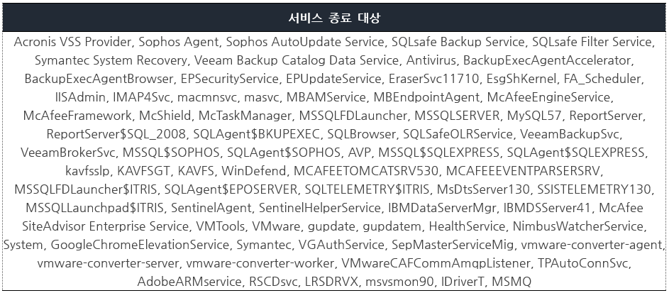 “MegaCortex”는 파일 암호화를 하기 전에 프로세스와 서비스를 종료한다.