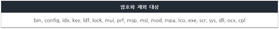 현재까지 확인된 암호화 제외 대상은 [표 3]의 목록과 같으며, 이를 제외한 파일은 암호화를 하는 것으로 확인된다.