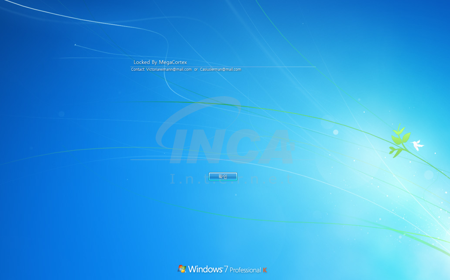 레지스트리가 추가 된 후, 사용자가 다시 로그인을 하려하면 [그림 4]와 같이 MegaCortex에 의해 잠금 됐다고 경고한다.