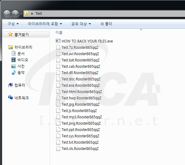 암호화가 진행되면 아래 [그림 4] 과 같이 ‘.Rooster865qqZ’ 확장자를 추가한다. 또한 암호화가 완료된 폴더에 ‘HOW TO BACK YOUR FIELS.exe’ 라는 이름의 랜섬노트를 생성한다.