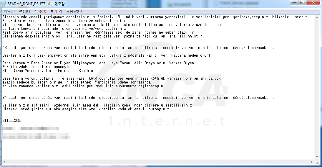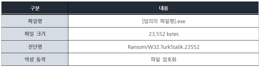 이번 보고서에서는 “TurkStatik” 랜섬웨어의 동작에 대해 알아보고자 한다.