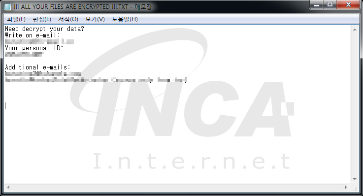 해당 랜섬웨어는 일반적인 형태의 랜섬웨어로 아직 정확한 유포 경로는 밝혀지지 않았다.