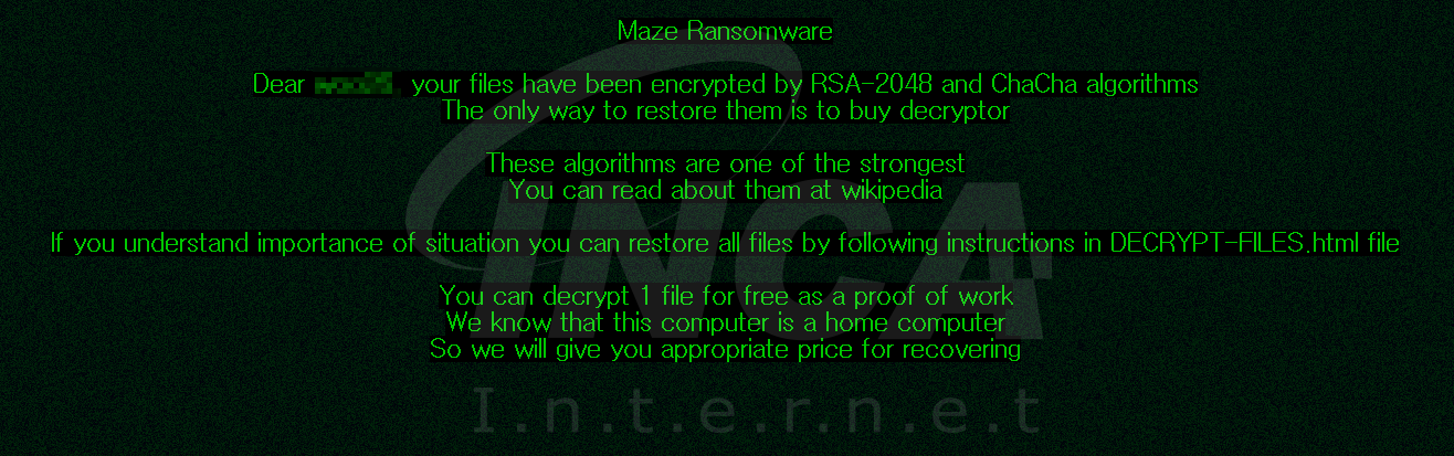 [그림 3] Maze 랜섬웨어 랜섬노트