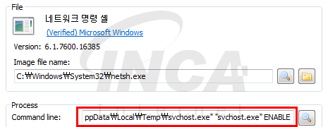또한 실행된 악성코드가 C2 서버와 지속적으로 연결할 수 있도록 ‘netsh.exe’를 이용해 방화벽 설정을 허용한다.