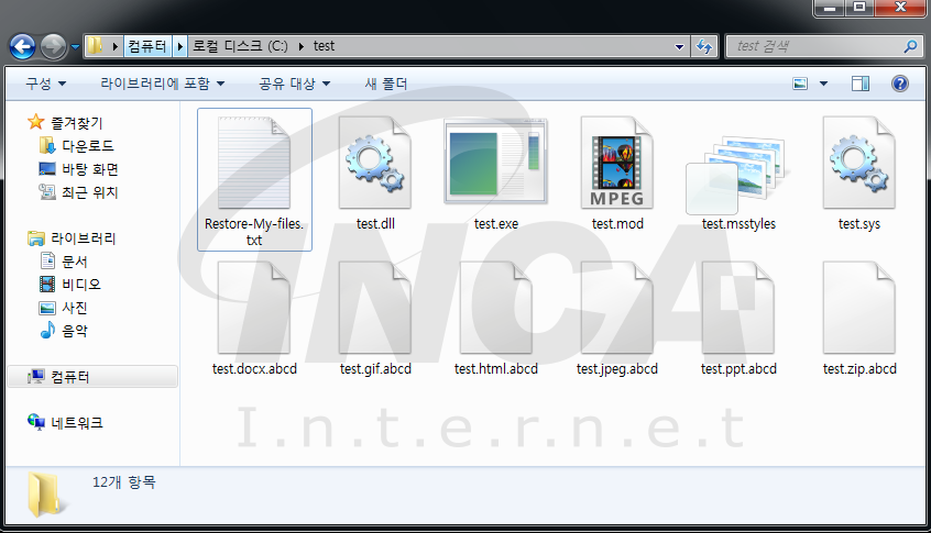 암호화가 완료되면 기존의 확장자 뒤에 .abcd 확장자를 추가하며, 암호화가 진행된 디렉터리에는 랜섬노트가 생성된다.