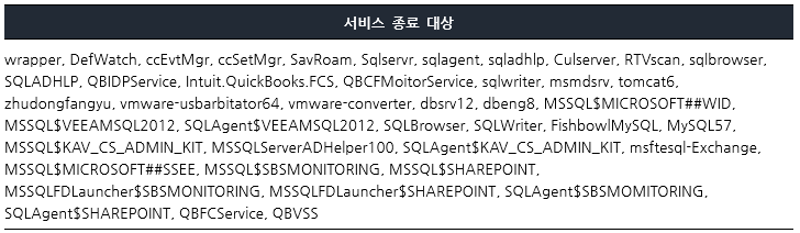 원활한 감염을 위해 [표 1]의 서비스 목록과 비교하여 사용자 PC에서 실행되고 있을 경우 종료한다.