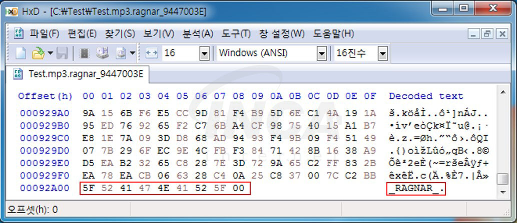 파일 암호화가 완료되면, 해당 파일의 끝에 “_RAGNAR_”라는 시그니처를 추가한다.