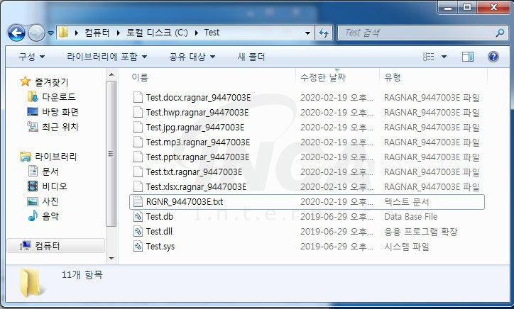 또한, 기존의 확장자 뒤에 “.ragnar_{랜덤 8자리}”를 추가한다.