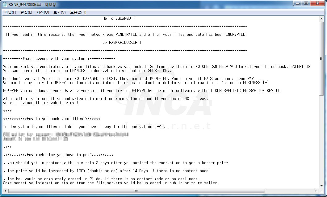이번 보고서에서는 “RagnarLocker” 랜섬웨어의 대해 간략하게 알아보고자 한다.