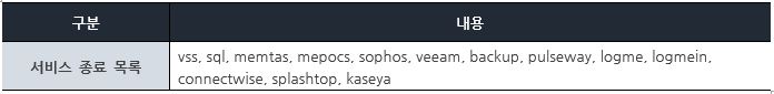 서비스는 주로 원격 관리 소프트웨어와 복구 관련 서비스를 종료한다.