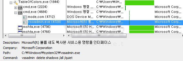 “Dharma” 랜섬웨어 실행 시 작업스케줄러에 등록하여 지속적으로 실행되도록 하며, 정상적인 복구를 방해하기 위해 볼륨 섀도우 복사본을 삭제한다.