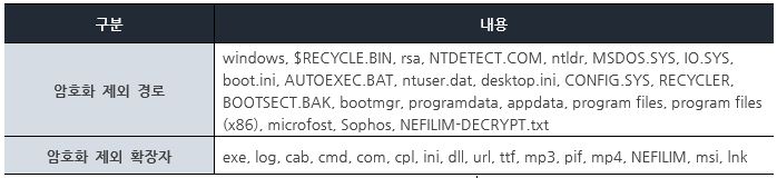 이후 드라이브의 파일들을 검색한 뒤 [표 1]의 암호화 제외 경로 및 확장자 목록과 비교하여, 조건에 부합하는 사용자의 모든 파일을 암호화한다.