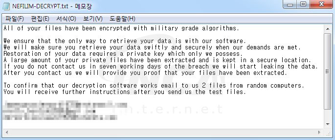 데이터를 공개하겠다고 협박하는 Nefilim Ransomware 감염 주의