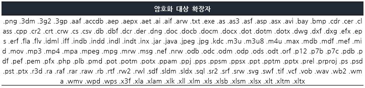 RekenSom 랜섬웨어의 암호화 제외 대상은 [표 1]과 같다.