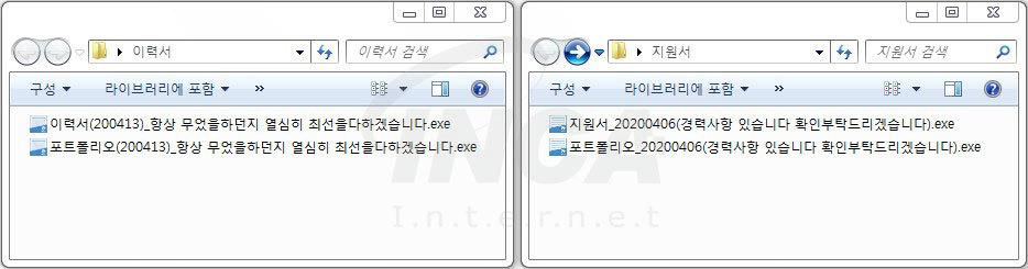 이번 보고서에서 알아본 ‘Makop’ 랜섬웨어는 입사 지원서로 위장한 피싱 메일로 유포되어 한글 문서 아이콘과 이력서 및 포트폴리오 관련 파일명으로 위장해 사용자의 클릭을 유도하는 특징을 갖고 있다.