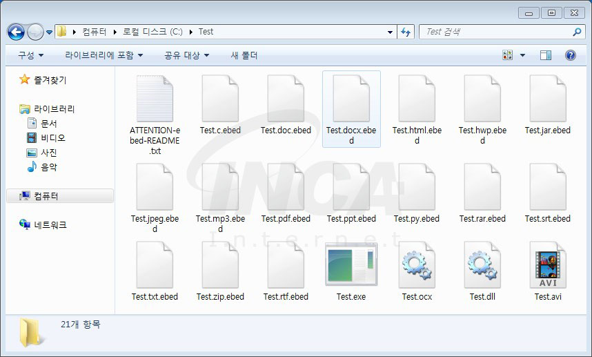 파일 암호화가 완료되면 기존의 확장자 뒤에 .ebed 확장자가 추가된다.