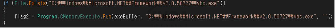 버퍼에 저장된 값은 Process Hollowing 기법을 사용하여 생성된 프로세스(vbc.exe)와 교체된다.
